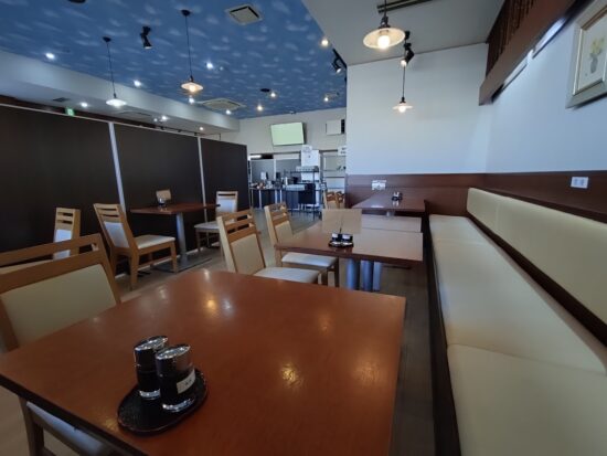 店内は落ち着いた雰囲気で、天井には青空のようなデザインが広がっていました☁️